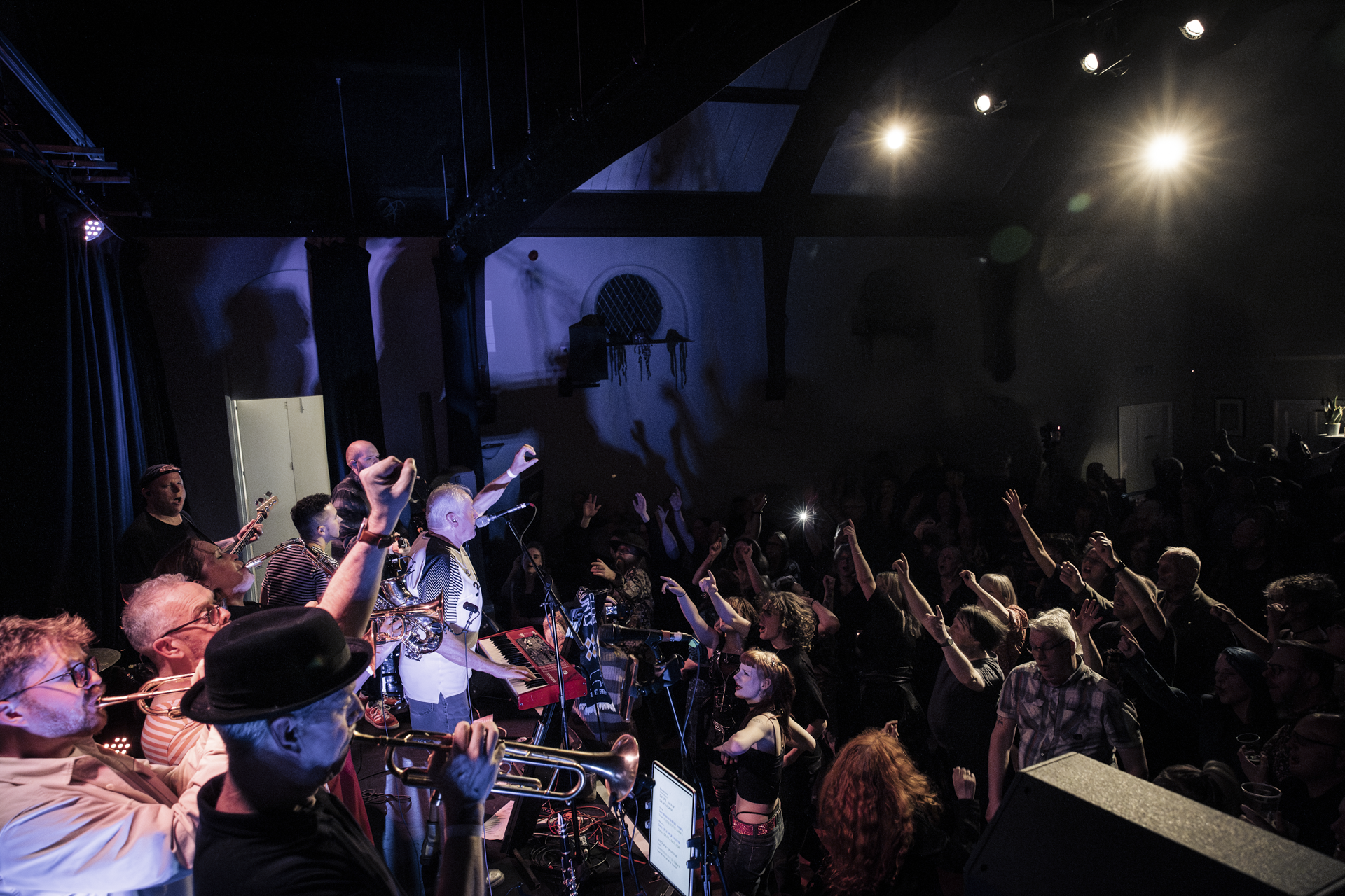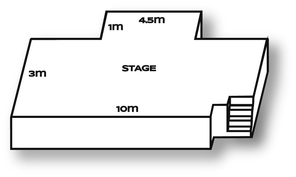 room: 10m x 10mstage: 10m x 4m standing: 220theatre: 120cabaret: 80 < Back to Hire THE AUDITORIUM room: 10m x 10m stage: 10m x 4m standing: 220 theatre: 100 cabaret: 60 Enquire HERE